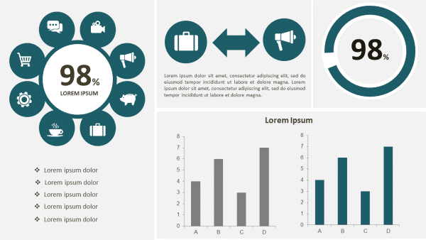 Highlight important metrics and have your data stand out in any slideshow with this accessible gauge and chart dashboard template for powerpoint. Excellent for reporting kpis, sales figures and other data in a dashboard format. Understand your data with these great dashboard templates. This dashboard template features a variety of gauges and charts to present important information in a visually appealing fashion. Our dashboard templates are 100% easy to edit and highly customizable to meet specific needs.